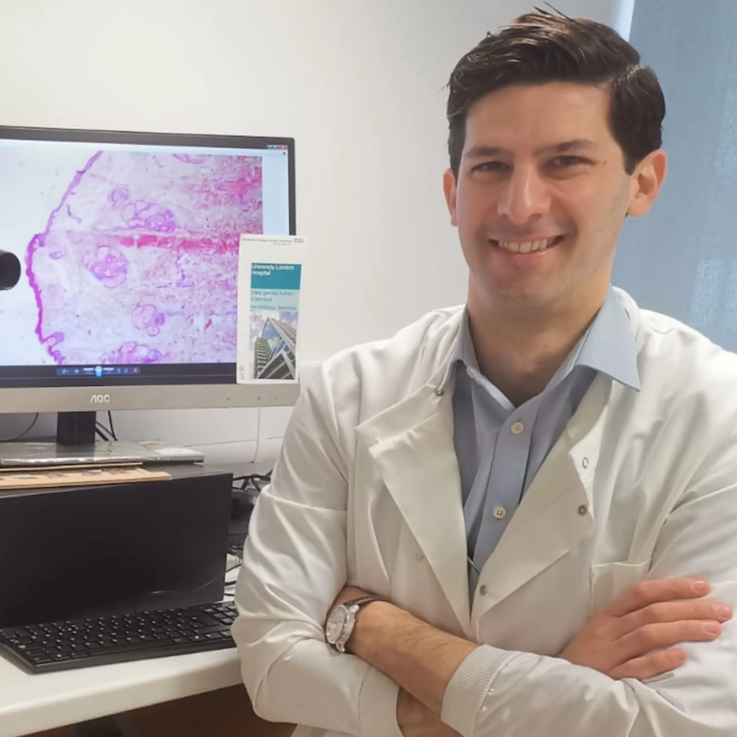 He is actively involved in skin-related research and has authored multiple publications on important dermatological topics. Currently, he is also undertaking a postgraduate medical research degree (MD Res) at UCL, on the topic of male genital lichen sclerosus, male genital pre-cancer, and cancer.